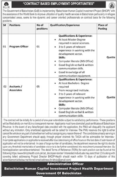 Health Department is looking for candidates for following posts as per job advertisement published in daily Jang Newspaper of October 11, 2022 for location Quetta, quetta Balochistan Pakistan: