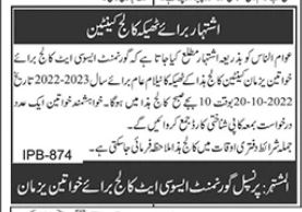 Government Associate College for Women Bahawalpur, bahawalpur Punjab Pakistan invites applications from eligible candidates for the post of canteen contractor as per advertisement of October 11, 2022 published in daily Jang Newspaper. Preferred Education is Bachelor and Intermediate etc.