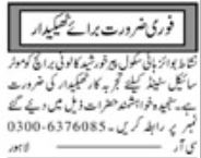 Apply at Nishat Boys High School latest Classifieds jobs in Contract and departments before closing date which is around undefined NaN, NaN or as per closing date in newspaper ad. Read complete ad online to know how to apply on latest Nishat Boys High School job opportunities.