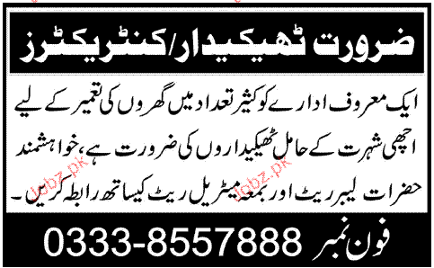 Contractors are required in Lahore