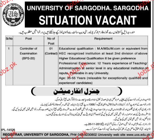 Apply as per details in job advertisement. Login to view further details of how to apply via https://www.jobz.pk online.