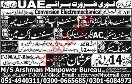 Vacancies in Arshman Manpower Bureau Advertisement April 2019