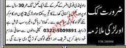 Apply as per details in job advertisement. Login to view further details of how to apply via https://www.jobz.pk online.
