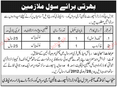 Latest Pakistan Army Posts Rawalpindi 2025