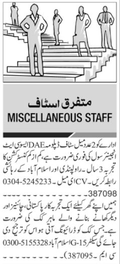 Private Company is looking for candidates for following posts as per job advertisement published in daily Jang Newspaper of August 8, 2024 for location Islamabad, rawalpindi Islamabad Pakistan: