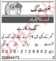 Vacant posts including chef and cook are announced in House Islamabad Pakistan as per 23 July 2022 advertisement in daily Express Newspaper. Preferred Education is Matric and Middle etc.