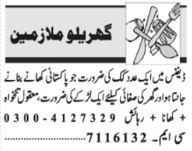 Vacant posts including cleaner, chef, chinese cook, house worker and cook are announced in House Lahore, lahore Punjab Pakistan as per 13 April 2022 advertisement in daily Jang Newspaper. Educational qualifications required Primary, Middle and Matric etc.