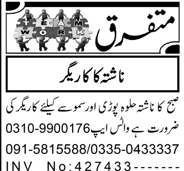 Restaurant invites applications for job positions advertised in daily Aaj dated 14 December 2023 for following vacancies in Peshawar, peshawar Khyber Pakhtunkhwa KPK Pakistan.