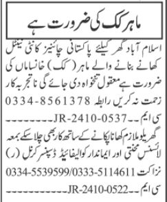 House invites applications for job positions advertised in daily Jang dated 18 October 2024 for following vacancies in Islamabad, islamabad Islamabad Pakistan.