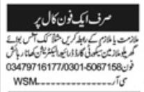 Private Company invites applications for job positions advertised in daily Khabrain dated 14 August 2025 for following vacancies in Islamabad, islamabad Islamabad Pakistan.