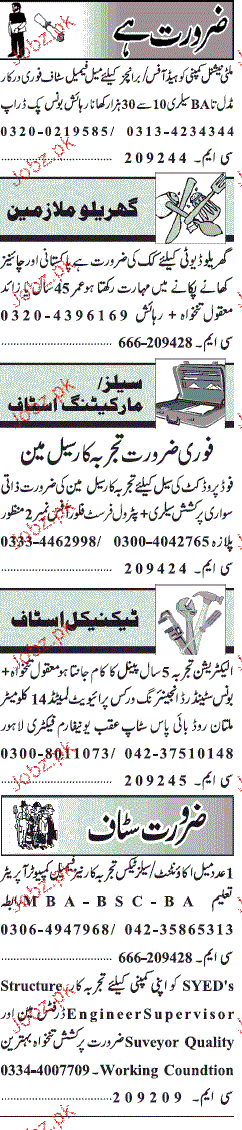 Cook, Drivers And Sales & Marketing Staff Job Opportunity