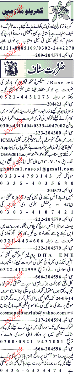 Cook, Drivers, Helpers, Computer Operators Job Opportunity
