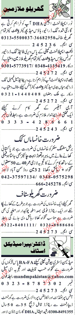 Cook, Drivers, House Maid, Salesman Job Opportunity