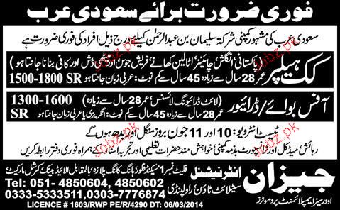 Cook Helpers and Office Boys / Drivers Job Opportunity