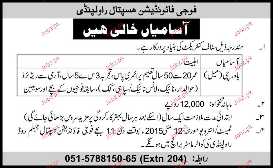 Cook Job in Fauji Foundation Hospital Rawalpindi