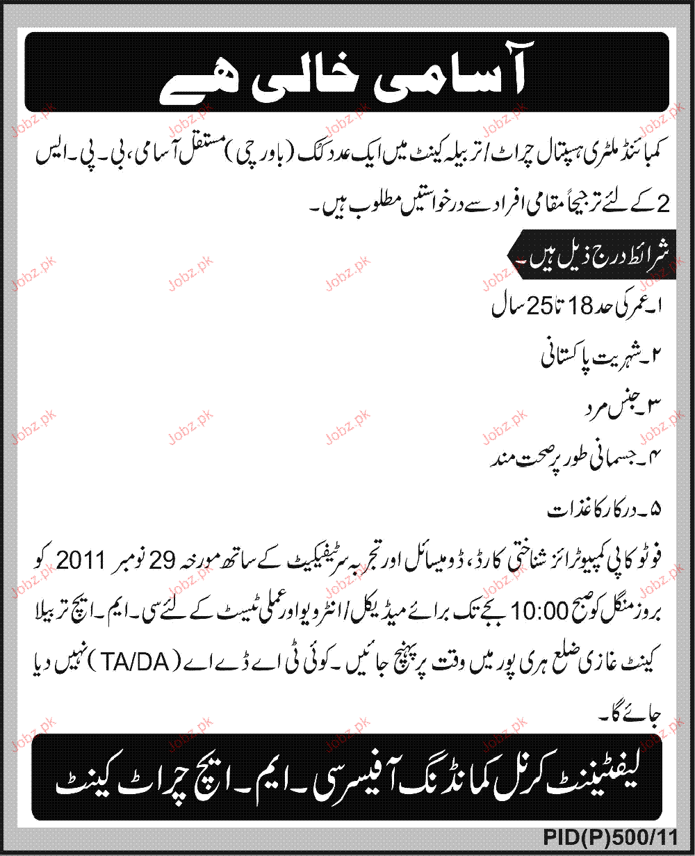 Apply as per details in job advertisement. Login to view further details of how to apply via https://www.jobz.pk online.
