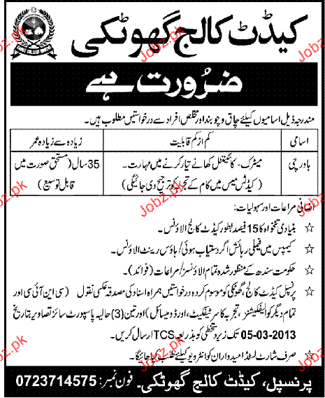 Apply as per details in job advertisement. Login to view further details of how to apply via https://www.jobz.pk online.