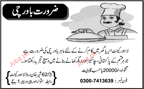 Cooks are required in Lahore