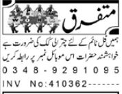 Apply as per details in job advertisement. Login to view further details of how to apply via https://www.jobz.pk online.