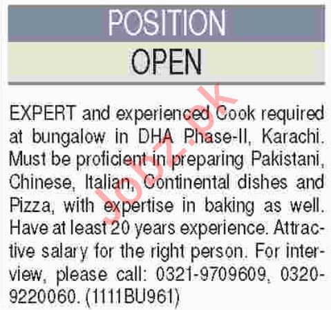 Cook Jobs Career Opportunity in Karachi