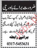 Apply as per details in job advertisement. Login to view further details of how to apply via https://www.jobz.pk online.
