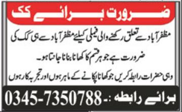 Cook Jobs In Muzaffarabad For House
