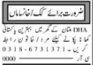 House Multan, multan Punjab Pakistan invites applications from eligible candidates for the post of khansama and cook as per advertisement of March 12, 2024 published in daily Khabrain Newspaper. Primary and Middle etc. educational qualification will be preferred.
