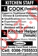 Cook & Kitchen Helper Jobs 2018 in Lahore