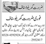 Apply as per details in job advertisement. Login to view further details of how to apply via https://www.jobz.pk online.