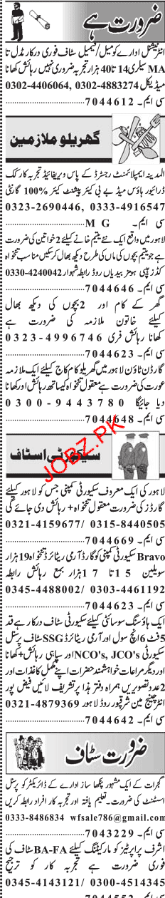 Latest House House Staff Posts Lahore 2025