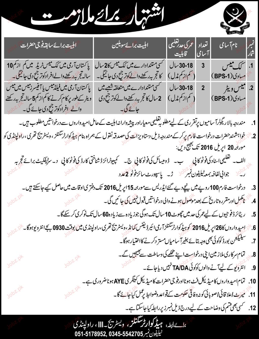 Cook Mes And Mess Waiters Job In Pakistan Army