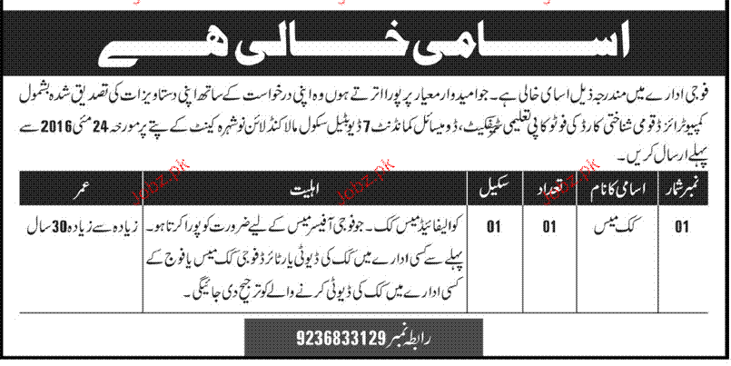 Apply as per details in job advertisement. Login to view further details of how to apply via https://www.jobz.pk online.
