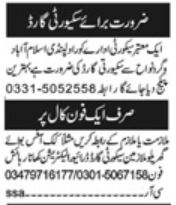 Vacant posts including cook, security guard, electrician, driver, office boy and house worker are announced in Private Company Islamabad, islamabad Islamabad Pakistan as per 8 January 2025 advertisement in daily Khabrain Newspaper. Candidates with Matric, Primary, Intermediate and Middle etc. educational background will be preferred.