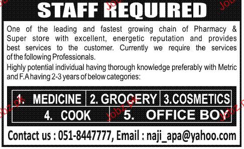 Cook, Office Boys and Cosmetics Staff Job Opportunity