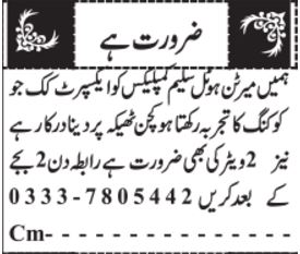 Hotel invites applications for job positions advertised in daily Jang dated 26 November 2024 for following vacancies in Quetta, quetta Balochistan Pakistan.