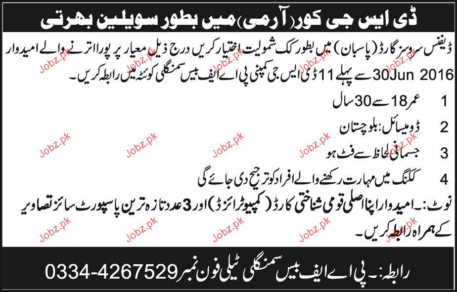 Cooks Job In DSG Corps Pakistan Army