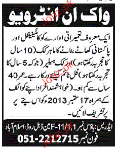 Apply as per details in job advertisement. Login to view further details of how to apply via https://www.jobz.pk online.