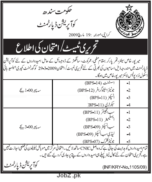 Latest Cooperation Department Admin Clerical Posts Karachi 2025
