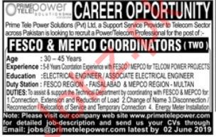 Vacancies in Prime Tele Power Solutions Advertisement May 2019