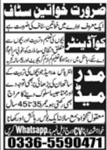 Coordinator & Mother Maid Jobs In Private Company