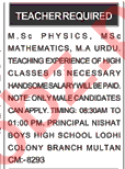 Apply as per details in job advertisement. Login to view further details of how to apply via https://www.jobz.pk online.