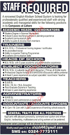 Latest Private Company Teaching Posts Lahore 2025