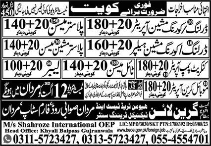 Green Line Human Resource Manpower is looking for candidates for following posts as per job advertisement published in daily Express Newspaper of August 10, 2023 for location Kuwait, kuwait Kuwait: