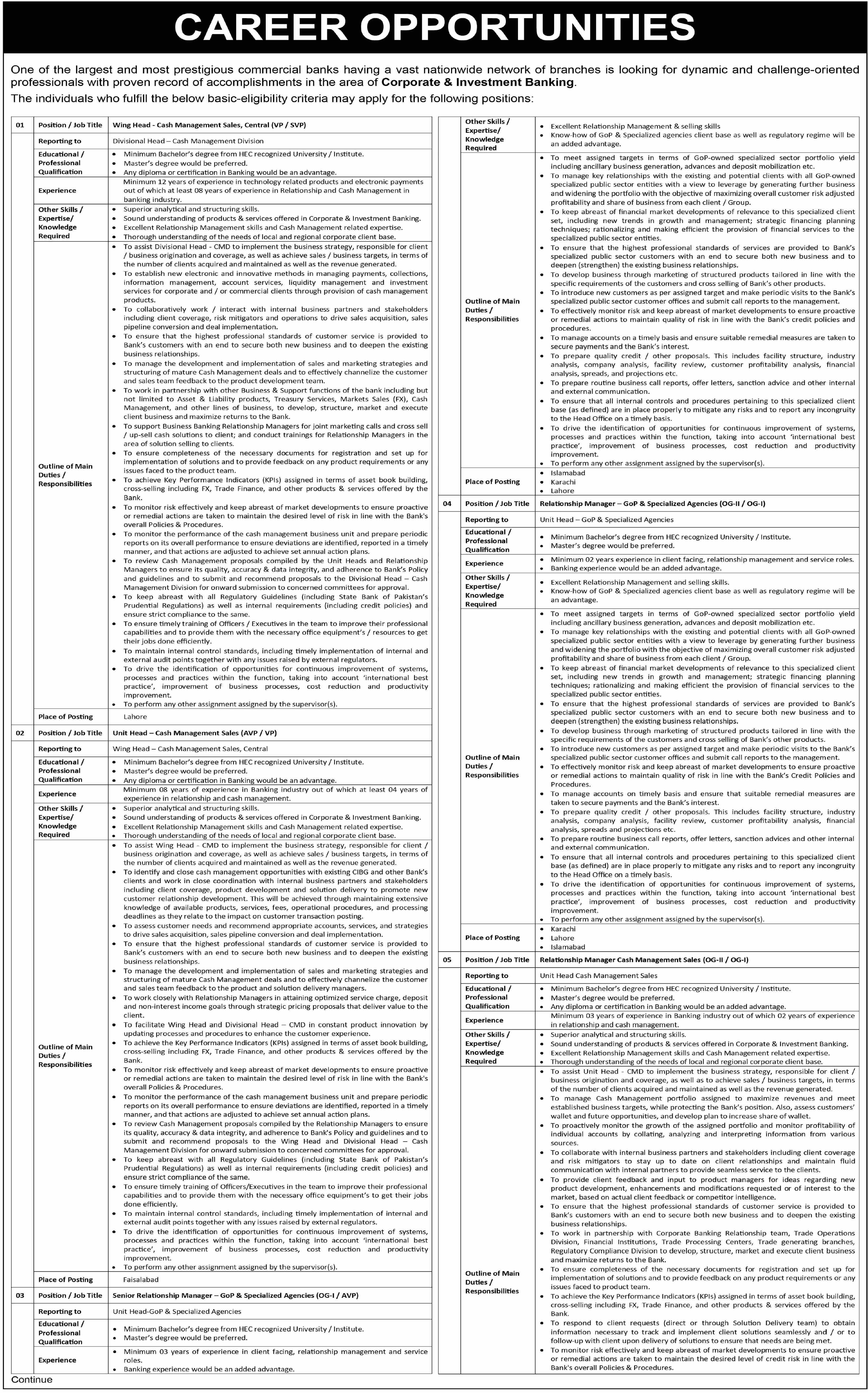 Apply as per details in job advertisement. Login to view further details of how to apply via https://www.jobz.pk online.