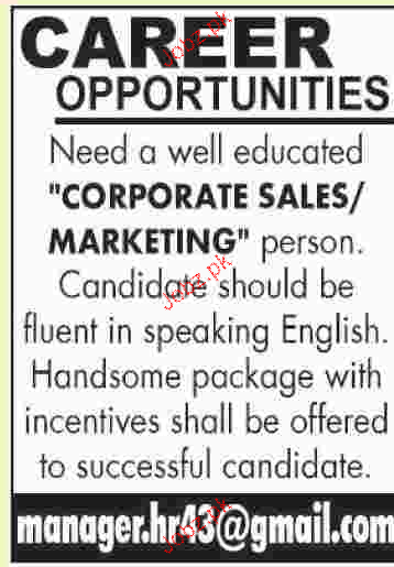 Corporate Sales / Marketing Personnel Job Opportunity