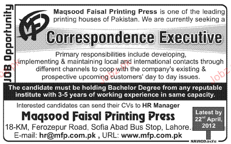 Apply as per details in job advertisement. Login to view further details of how to apply via https://www.jobz.pk online.