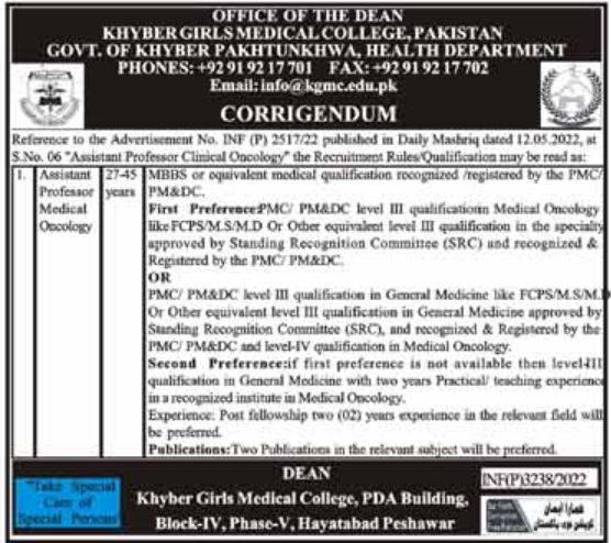 Corrigendum For Job At Khyber Girls Medical College