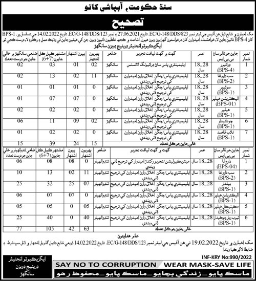 Irrigation Department is looking for candidates for following posts as per job advertisement published in daily Kawish Newspaper of March 6, 2022 for location Sanghar, sanghar Sindh Pakistan: