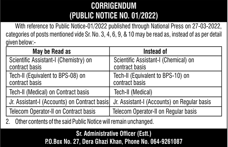 Corrigendum For Vacancies At Public Sector Organization