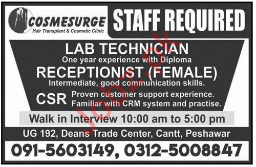 Latest Cosmesurge International Hospital Medical Posts Peshawar 2025